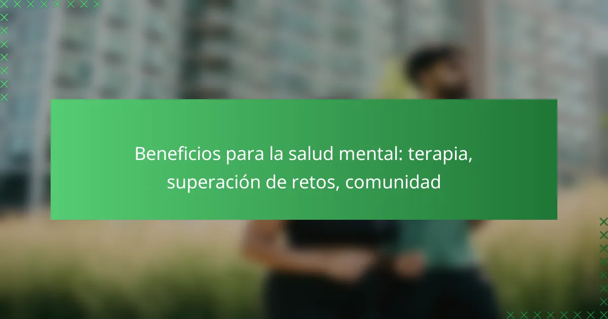 La salud mental es un aspecto crucial del bienestar general, y su mejora puede lograrse a través de la terapia, la superación de retos y el apoyo comunitario. La terapia permite a las personas enfrentar sus problemas emocionales, mientras que superar desafíos fortalece la resiliencia. Además, una comunidad solidaria ofrece el respaldo necesario para afrontar dificultades y fomentar un entorno de crecimiento personal.